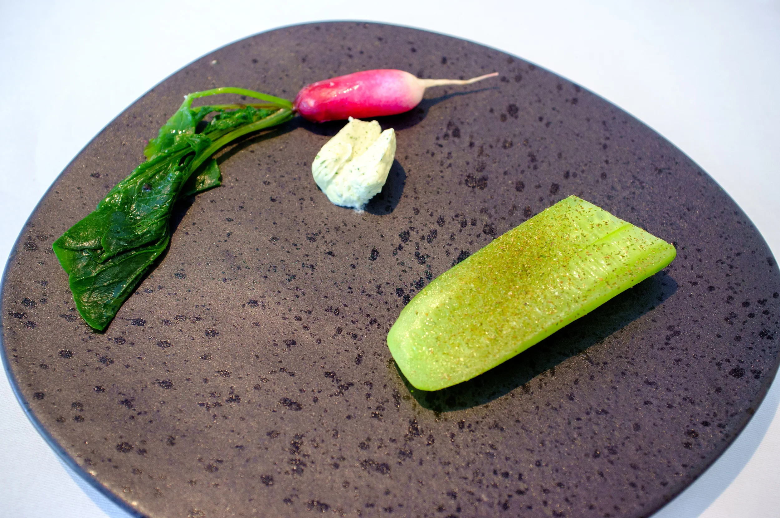 Breakfast radish, cucumber and lemon myrtle, jersey cream
