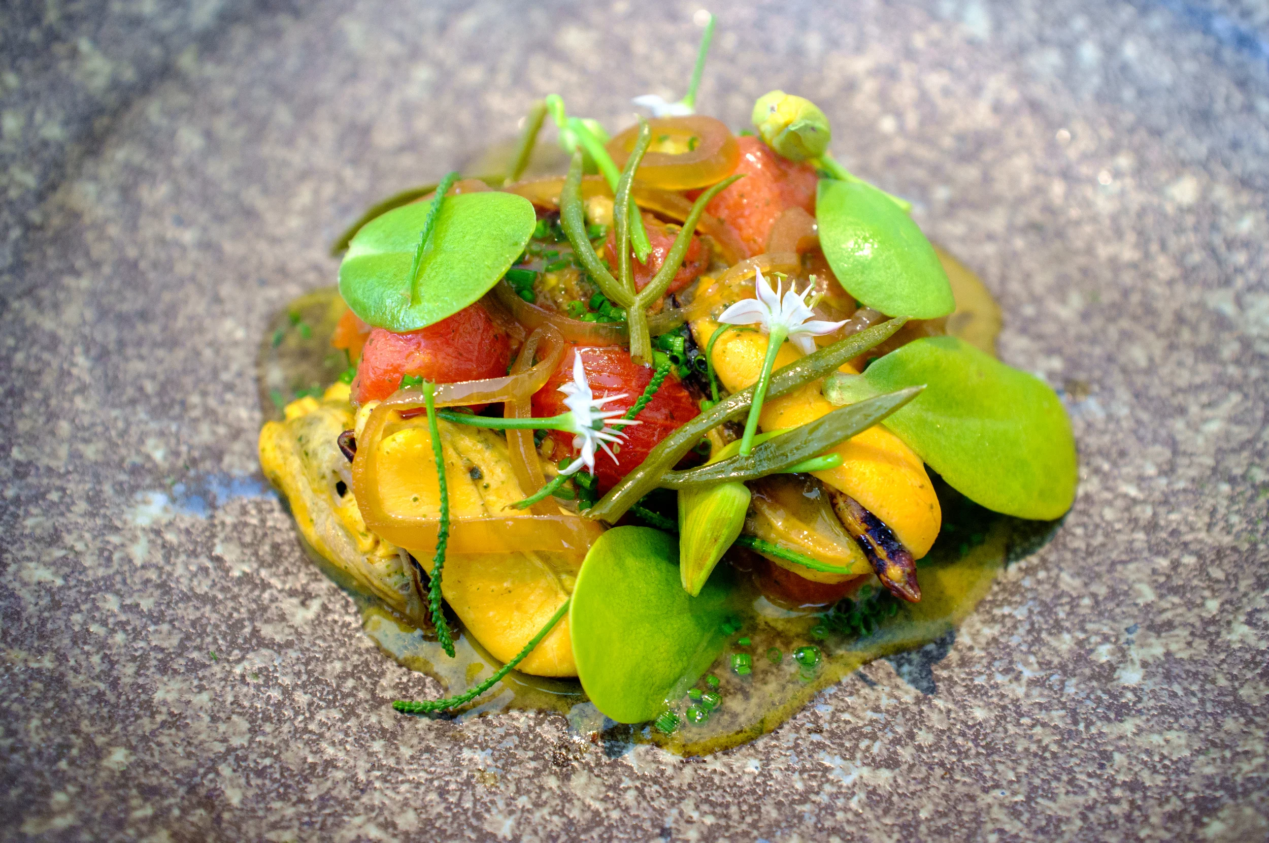 Tomatoes and mussels gently braised in sea butter